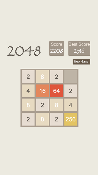 In the game 2048, players are presented with a 4x4 grid populated by numbered tiles. The objective is to slide these tiles using swipe gestures or arrow keys, combining identical numbers to create higher-value tiles. At the start of the game, the grid randomly features tiles bearing the numbers 2 or 4. The ultimate goal is to reach the elusive 2048 tileāor even go beyond to even higher numbers. Each successful merge adds excitement and strategy to the gameplay, as players continuously strive for higher scores and more challenging tiles.