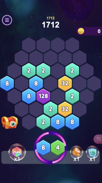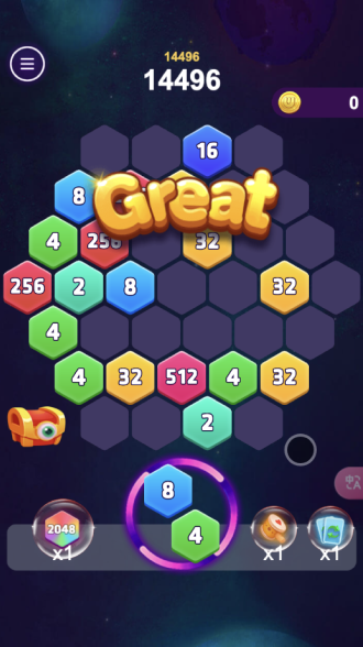 "Hexagon 2048" is a puzzle game that combines the classic 2048 concept with elimination elements. Players slide numbered tiles on a hexagonal grid, merging tiles with the same number to create larger numbers. The goal is to merge tiles until reaching 2048 or higher. As the game progresses, players can use various power-ups to help eliminate and merge tiles, adding fun and challenge. The game features multiple levels, each with unique layouts and challenges, allowing players to enjoy the elimination process while sharpening their logical thinking and strategic planning skills. Come and challenge your limits to see how high a score you can achieve!