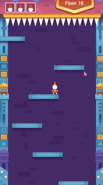 In Brave Warrior: 100 Floors, players control a warrior descending through levels by tapping the left or right side of the screen to move the character. The objective is to avoid obstacles, prevent touching spikes at the top, and ensure precise landings on platforms; failure to do so results in losing a life. As the player progresses deeper, the difficulty increases, demanding quicker reflexes and strategic planning to navigate traps and enemies. Each floor presents new challenges, testing the player's agility and decision-making skills.