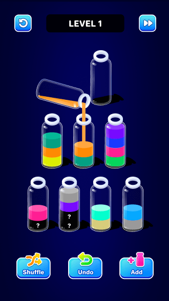 No story, no timers, no penalties — only soothing pouring sounds, vibrant yet gentle visuals, and that peaceful sense of order restored. Perfect for a quick mental reset during the day or a relaxing wind-down at night.